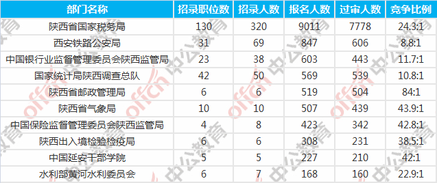 截至到4日9時,通過審核人數(shù)前三位的部門依次是:陜西省國家稅務(wù)局、西安鐵路公安局、國家統(tǒng)計局陜西調(diào)查總隊,三部門通過審核總?cè)藬?shù)達8923人,占通過審核總?cè)藬?shù)的77.6%。