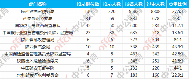 陜西國考報(bào)名人數(shù)最多的十大部門