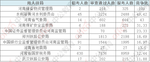截止到11月4日16時(shí),通過審核人數(shù)前三位的部門依次是:河南省國家稅務(wù)局、水利部黃河水利委員會(huì)、鄭州鐵路公安局,三部門通過審核總?cè)藬?shù)達(dá)11873人,占通過審核總?cè)藬?shù)的77.58%。