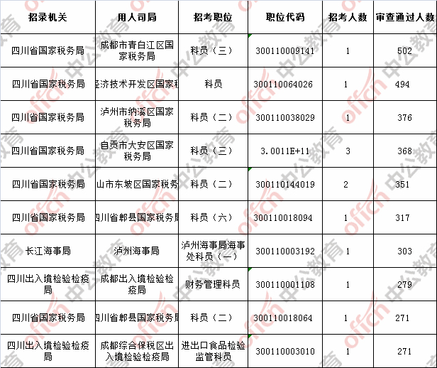 第五日報名通過審核人數(shù)前十的職位主要集四川省國家稅務(wù)局等部門,具體信息如下: