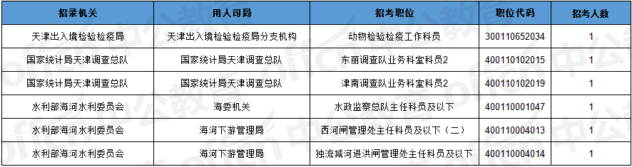截止到5日09時(shí),工作地點(diǎn)在天津的職位共有6個(gè)無人報(bào)考,占全部職位的2.8%。下圖是無人報(bào)考職位一覽表,中公網(wǎng)校建議廣大考生多關(guān)注一些較冷職位,避免激烈競(jìng)爭(zhēng),結(jié)合自身?xiàng)l件,找到屬于自己的職位。
