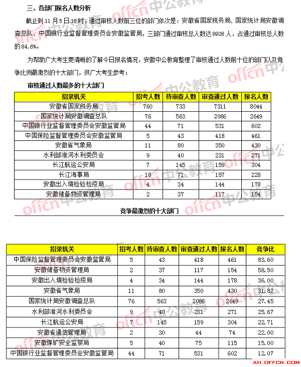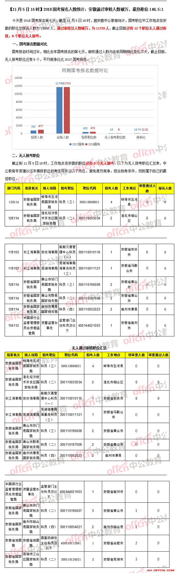 【11月5日16時(shí)】2018國(guó)考報(bào)名人數(shù)統(tǒng)計(jì):安徽通過(guò)審核總?cè)藬?shù)破萬(wàn),還有8個(gè)職位無(wú)人報(bào)考