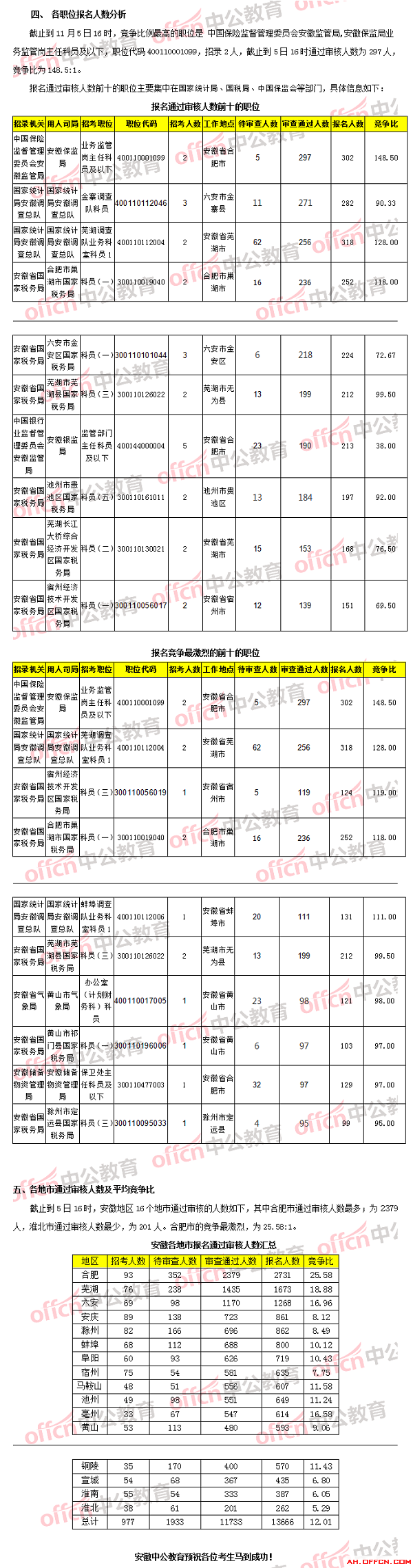 【11月5日16時(shí)】2018國(guó)考報(bào)名人數(shù)統(tǒng)計(jì):安徽通過審核總?cè)藬?shù)破萬,還有8個(gè)職位無人報(bào)考