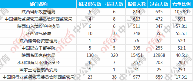 陜西國(guó)考報(bào)名競(jìng)爭(zhēng)最激烈的十大部門
