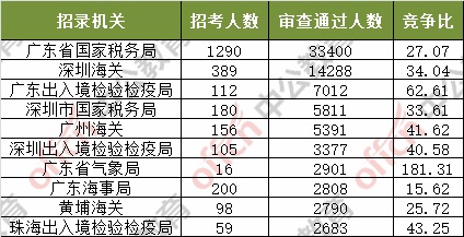 截止到6日16時(shí),通過審核人數(shù)前三位的部門依次是:廣東省國家稅務(wù)局、深圳海關(guān)、廣東出入境檢驗(yàn)檢疫局,三部門通過審核總?cè)藬?shù)達(dá)54700人,占通過審核總?cè)藬?shù)的60%。