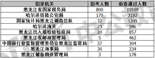 截止到11月6日16時,通過審核人數(shù)前三位的部門依次是:黑龍江省國家稅務(wù)局、哈爾濱鐵路公安局、國家統(tǒng)計局黑龍江調(diào)查總隊,三部門通過審核總?cè)藬?shù)達(dá)20036人,占通過審核總?cè)藬?shù)的85.19%。其中黑龍江省國稅局審核通過人數(shù),與去年同期相比增加了4381人。