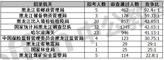 截至11月6日16時,據(jù)中公網(wǎng)校統(tǒng)計,國考職位中工作地點在黑龍江的職位待審查6617人,審查通過23519人,與去年同期相比增加了4989人。目前共有30個職位無人通過審核,有19個職位無人報名。國考報名已經(jīng)進(jìn)入倒計時,中公網(wǎng)校建議各位考生提早報名,以免報名最后一天報名過于集中。