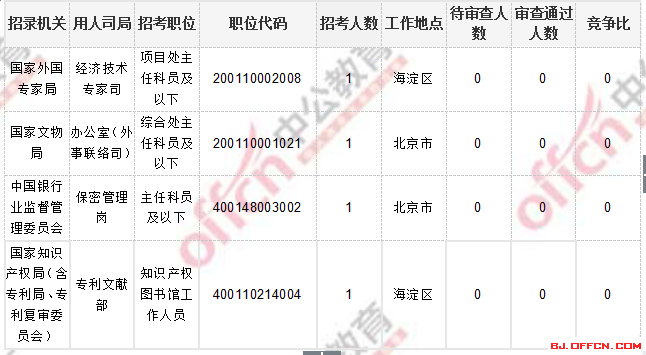 2018國考北京地區(qū)無人報(bào)考職位(4個(gè))
