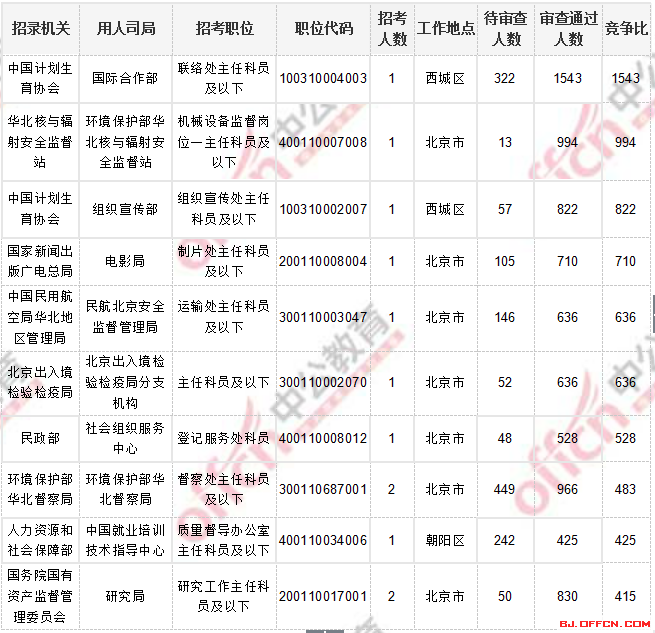 一、北京地區(qū)招錄大戶——國稅 競爭比31:1