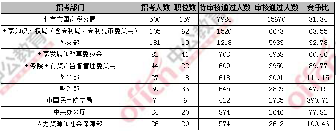 2018國考北京地區(qū)過審人數(shù)最多十大部門