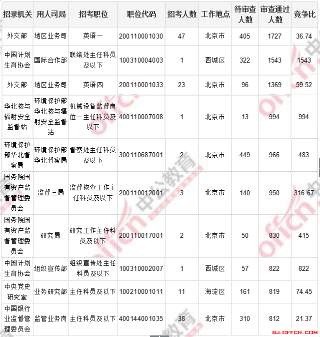 2018國(guó)考北京地區(qū)過(guò)審人數(shù)最多十大職位