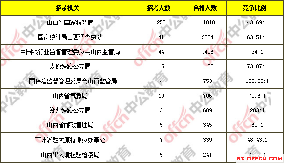 截止到11月7日16時(shí),通過(guò)審核人數(shù)前三位的部門(mén)依次是:山西省國(guó)家稅務(wù)局、國(guó)家統(tǒng)計(jì)局山西調(diào)查總隊(duì)、中國(guó)銀行業(yè)監(jiān)督管理委員會(huì)山西監(jiān)管局,三部門(mén)通過(guò)審核總?cè)藬?shù)達(dá)15110人,占通過(guò)審核總?cè)藬?shù)的76.72%,與昨天相比審核人數(shù)增加了3598人。