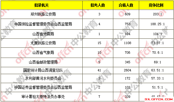 為幫助廣大考生更清晰的了解今日?qǐng)?bào)名情況,中公網(wǎng)校整理了審核通過(guò)人數(shù)前十位的部門(mén)以及競(jìng)爭(zhēng)比例最激烈的十大部門(mén),供廣大考生參考: