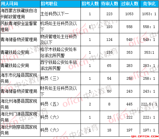 以下是7日16時(shí)各部門報(bào)名人數(shù)統(tǒng)計(jì)分析,其中中國(guó)民航青海安全監(jiān)督管理局、青海省物資儲(chǔ)備管理局、青海省郵政管理局等三個(gè)部門競(jìng)爭(zhēng)最激烈,競(jìng)爭(zhēng)比均已超過219:1。