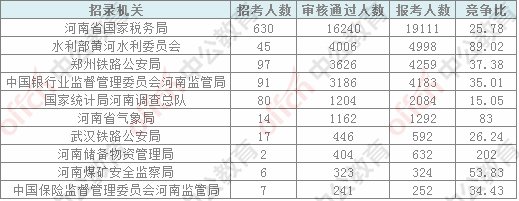 為幫助廣大考生更清晰的了解今日報名情況,中公網校整理了審核通過人數前十位的部門以及競爭比例最激烈的十個部門,供廣大考生參考: