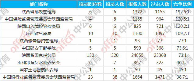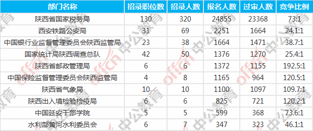 陜西國(guó)考報(bào)名人數(shù)最多的十大部門(mén)