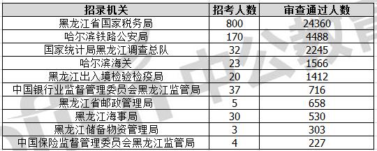 截止到11月8日16時(shí),通過審核人數(shù)前三位的部門依次是:黑龍江省國(guó)家稅務(wù)局、哈爾濱鐵路公安局、國(guó)家統(tǒng)計(jì)局黑龍江調(diào)查總隊(duì),三部門通過審核總?cè)藬?shù)達(dá)31093人,占通過審核總?cè)藬?shù)的83.44%。其中黑龍江省國(guó)稅局審核通過人數(shù),與去年同期相比增加了7165人。