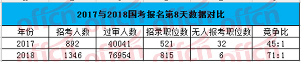 [8日16時(shí)]2018湖北國考報(bào)名人數(shù)分析:湖北89915人報(bào)名,76954人過審,6個(gè)職位無人報(bào)考