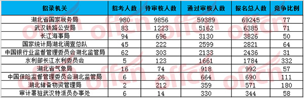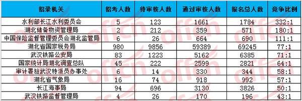湖北報(bào)名競爭最激烈的十大部門