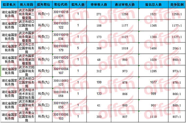 報(bào)名通過(guò)審核人數(shù)前十的職位集中在湖北省國(guó)家稅務(wù)局,具體信息如下: