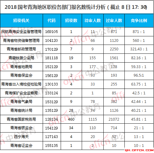 2018國(guó)考青海地區(qū)職位網(wǎng)上報(bào)名詳細(xì)統(tǒng)計(jì)表(截至11月8日17:30)