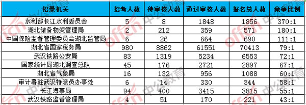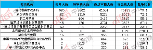 湖北報(bào)名競(jìng)爭(zhēng)最激烈的十大部門(mén)