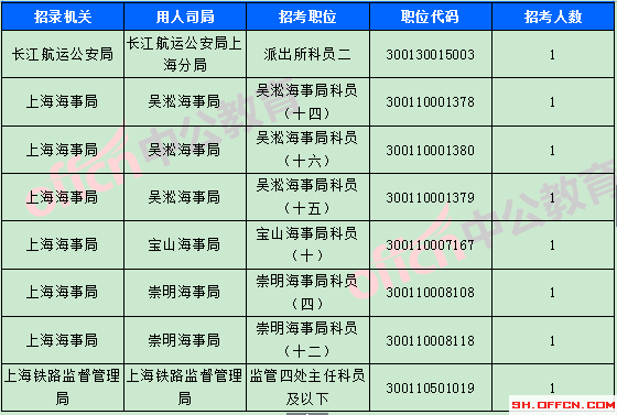 截止到8日17:30時,工作地點在上海的職位共有8個無人報考,占全部職位的2.48%。下面是無人報考職位一覽表,上海中公網校專家建議廣大考生多關注一些較冷職位,避免激烈競爭,結合自身條件,找到屬于自己的職位。