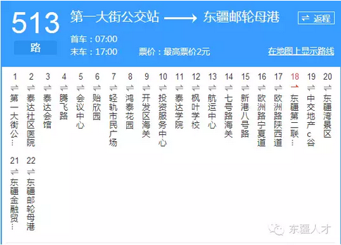 ②可乘坐513路公交車至東疆第二聯(lián)檢服務(wù)中心,公交路線圖如下: