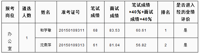 2015云南怒江州級機關(guān)遴選公務(wù)員面試成績及進入經(jīng)歷業(yè)績評價人員公告(第16號)