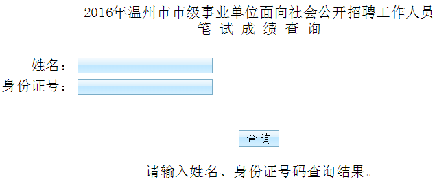 點擊進(jìn)入>>>2016年溫州市市級事業(yè)單位面向社會公開招聘工作人員筆試成績查詢