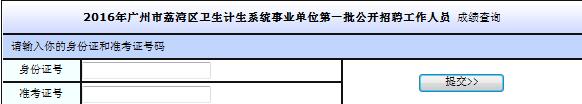 2016廣東荔灣區(qū)衛(wèi)生計(jì)生系統(tǒng)事業(yè)單位招聘考試筆試成績(jī)查詢?nèi)肟冢ǖ谝慌?/h1>