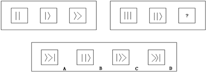 例題:下題給出兩套圖形,左套中的三個圖形在構成或變化上,具有某種特點或遵循某種規(guī)則。要求從下面四個選項中,選擇一個取代右套中的“?”,使右套圖形也具有與左套圖形相同或相似的構成特點或變化規(guī)則。
