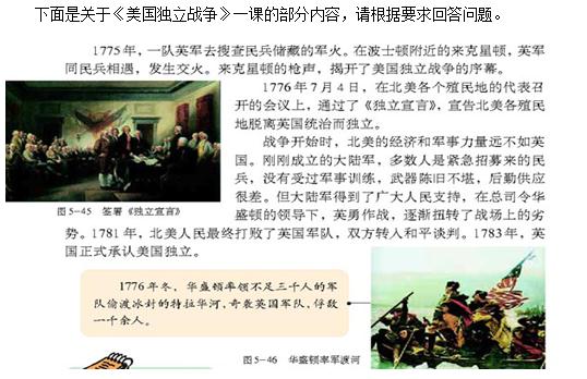 下面是關(guān)于《美國(guó)獨(dú)立戰(zhàn)爭(zhēng)》一課的部分內(nèi)容,請(qǐng)根據(jù)要求回答問題。