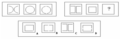 例題:下題給出兩套圖形,左套中的三個圖形在構(gòu)成上,或變化上,具有某種特點或遵循某種規(guī)則。要求從下面四個選項中,選擇一個取代右套中的“?”,使右套圖形也具有與左套圖形相同或相似的構(gòu)成特點或變化規(guī)則。