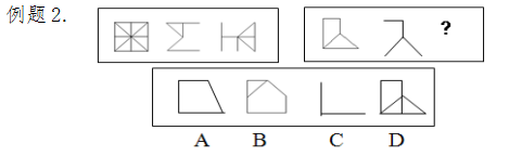 圖形推理試題主要考查應(yīng)考者抽象推理的能力。要求考生從四個(gè)備選答案中選擇最符合規(guī)律的一個(gè),替代題干中的問(wèn)號(hào),使圖形呈現(xiàn)出一定的規(guī)律性。試題包括多種類(lèi)型,僅舉其中一種類(lèi)型為例。