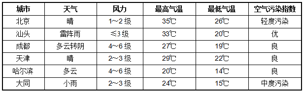 例2:下面是某日幾個(gè)城市的天氣預(yù)報(bào)