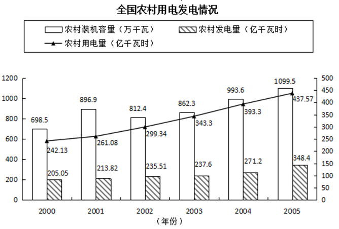 2.根據(jù)上圖,下列關(guān)于我國農(nóng)村用電發(fā)電情況的表述,錯(cuò)誤的一項(xiàng)是( )。