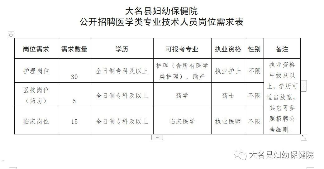原文標題:【招聘公告】大名縣婦幼保健院公開招聘醫(yī)學類專業(yè)技術人員公告