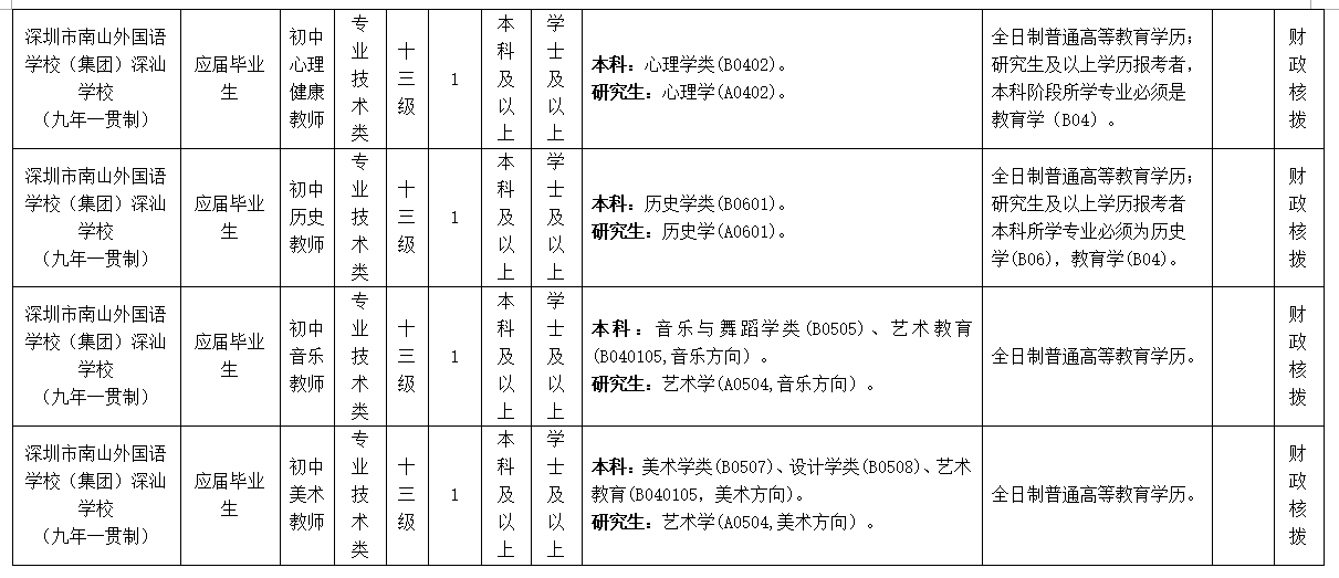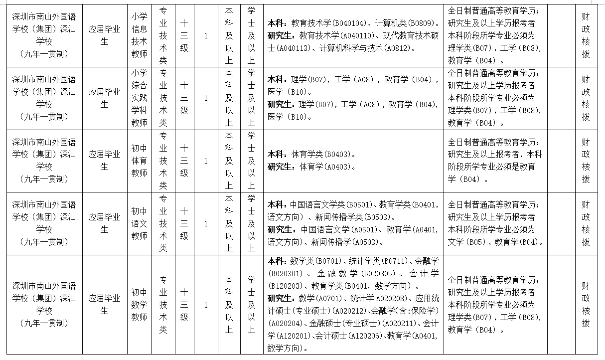 為進一步加強我區(qū)骨干教師隊伍建設(shè),根據(jù)《廣東省事業(yè)單位公開招聘人員辦法》(廣東省人民政府令第139號),深圳市南山外國語學校()深汕學校(九年一貫制)招聘應屆畢業(yè)生34名,現(xiàn)將有關(guān)事項公告如下: