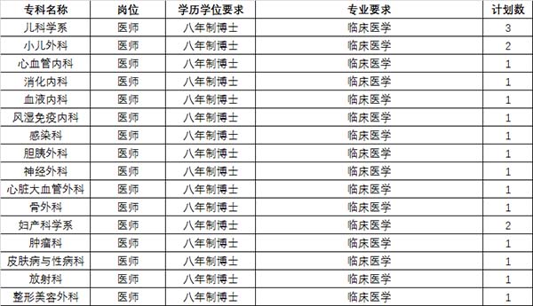 2、學(xué)歷要求:“雙”建設(shè)高校統(tǒng)招應(yīng)屆臨床醫(yī)學(xué)八年制博士。