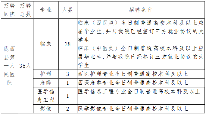 1、具有中華人民共和國(guó)國(guó)籍。2、擁護(hù)中華人民共和國(guó)憲法,擁護(hù)中國(guó)共產(chǎn)黨領(lǐng)導(dǎo)和社會(huì)主義制度。3、具有良好的政治素質(zhì)和道德水平。4、具有正常履行崗位職責(zé)的身體條件和心理素質(zhì)。5、具備全日制普通高等學(xué)校本科及以上學(xué)歷,(報(bào)考臨床醫(yī)學(xué)專(zhuān)業(yè)的必須是應(yīng)屆畢業(yè)生,并與我院已經(jīng)簽訂三方就業(yè)協(xié)議的大學(xué)生)。應(yīng)屆畢業(yè)生必須7月30日前拿到畢業(yè)證書(shū)和學(xué)位證書(shū)。6、年齡在18周歲以上、35周歲以下(1985年4月15日至2002年4月15日期間出生);7、熱愛(ài)醫(yī)療衛(wèi)生事業(yè),具備報(bào)考崗位所需的資格條件,具有招聘崗位所需專(zhuān)業(yè)知識(shí)和業(yè)務(wù)能力,所學(xué)專(zhuān)業(yè)必須與招聘崗位所需專(zhuān)業(yè)對(duì)應(yīng)。8、縣外在職人員(含已簽訂就業(yè)協(xié)議的人員)應(yīng)聘,須征得所在單位同意并出具證明材料??h外定向委培生應(yīng)聘的,須征得定向委培單位同意解除定向委培協(xié)議并出具證明材料。9、有下列情形的,不予招聘:曾受過(guò)刑事處罰和曾被開(kāi)除公職的人員;在公務(wù)員招考和事業(yè)單位公開(kāi)招聘中被招考(聘)主管機(jī)關(guān)認(rèn)定有嚴(yán)重違紀(jì)違規(guī)行為的人員、以及法律規(guī)定不得聘用的其他情形的人員;尚未解除紀(jì)律處分或正在接受紀(jì)律審查的人員、刑事處罰期限未滿或者涉嫌違法犯罪正在接受調(diào)查的人員;我縣事業(yè)單位在職在編人員以及其他不符合國(guó)家規(guī)定招聘條件的人員;縣內(nèi)定向委培生及提供虛假證件及材料的人員。10、現(xiàn)役軍人不得報(bào)考。