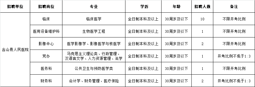 含山縣人民醫(yī)院2020年公開(kāi)招聘部分崗位工作人員職位表