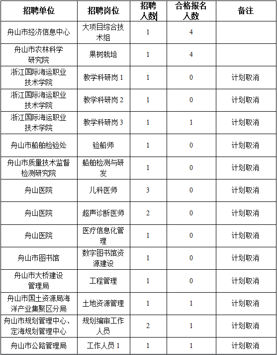 2015浙江舟山群島新區(qū)人才儲備中心招聘延長報名期限崗位報名情況及崗位計劃取消通知