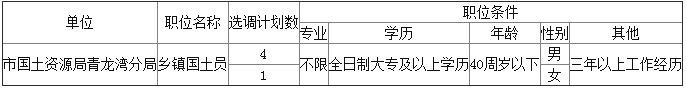 為適應(yīng)國(guó)土資源事業(yè)發(fā)展需要,經(jīng)市編委會(huì)同意,寧國(guó)市國(guó)土資源局青龍灣分局面向本市公開(kāi)選調(diào)工作人員5人,根據(jù)《寧國(guó)市直機(jī)關(guān)、事業(yè)單位公開(kāi)選調(diào)(選聘)公務(wù)員(工作人員)暫行辦法》,現(xiàn)將有關(guān)事項(xiàng)公告如下: