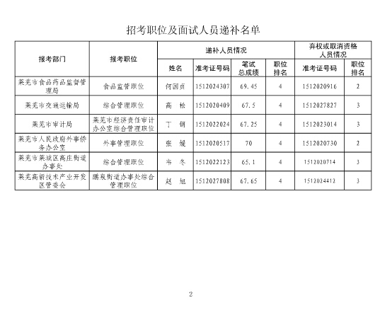 2015山東萊蕪市公務(wù)員面試遞補(bǔ)公告