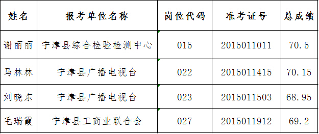 2015年寧津縣事業(yè)單位公開(kāi)招聘資格復(fù)核、考察遞補(bǔ)人員名單