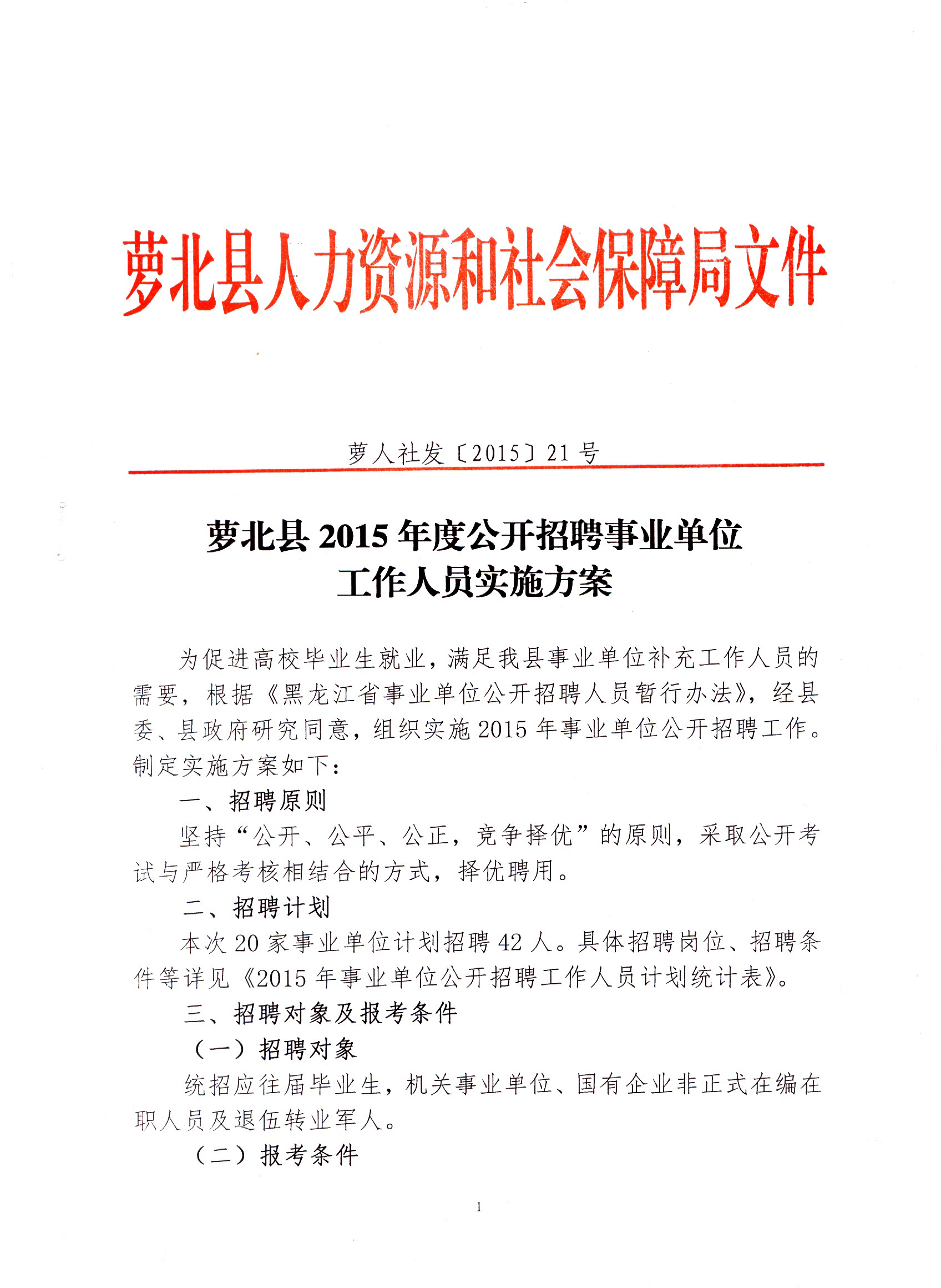 2015黑龍江蘿北縣事業(yè)單位招聘公告【招42人】