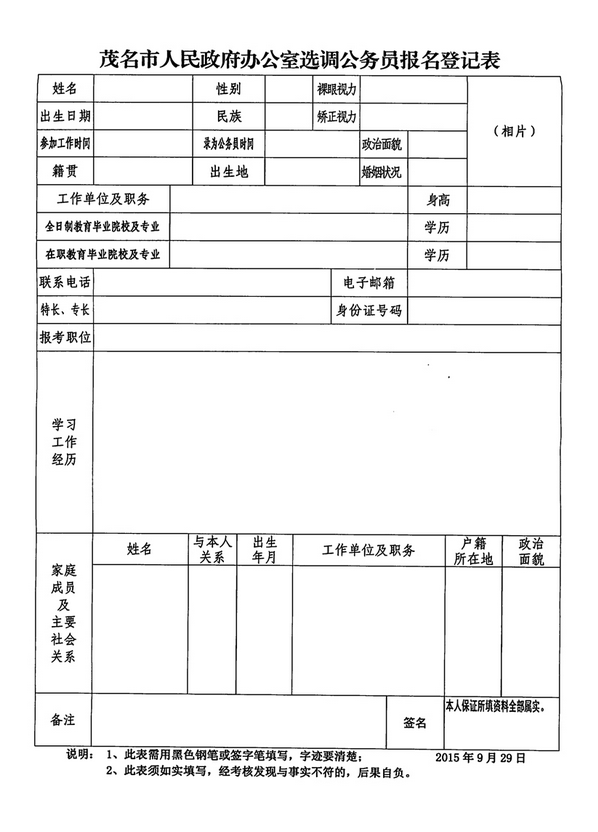 2015廣東茂名市府辦選調公務員4人公告