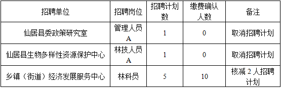 2015浙江仙居縣事業(yè)單位招聘取消或核減招聘計劃