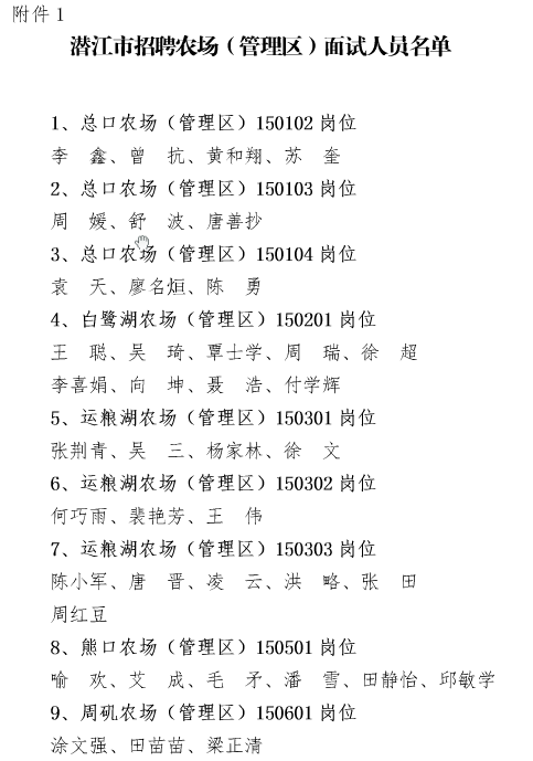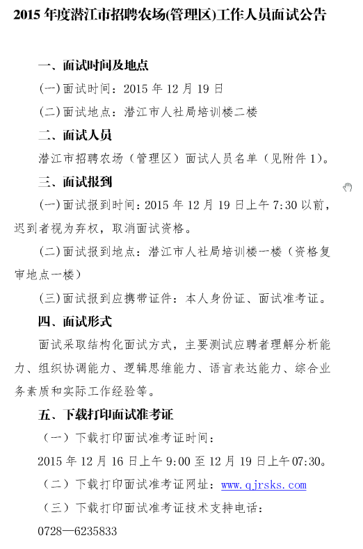 2015湖北潛江市招聘農場(管理區(qū))人員面試公告